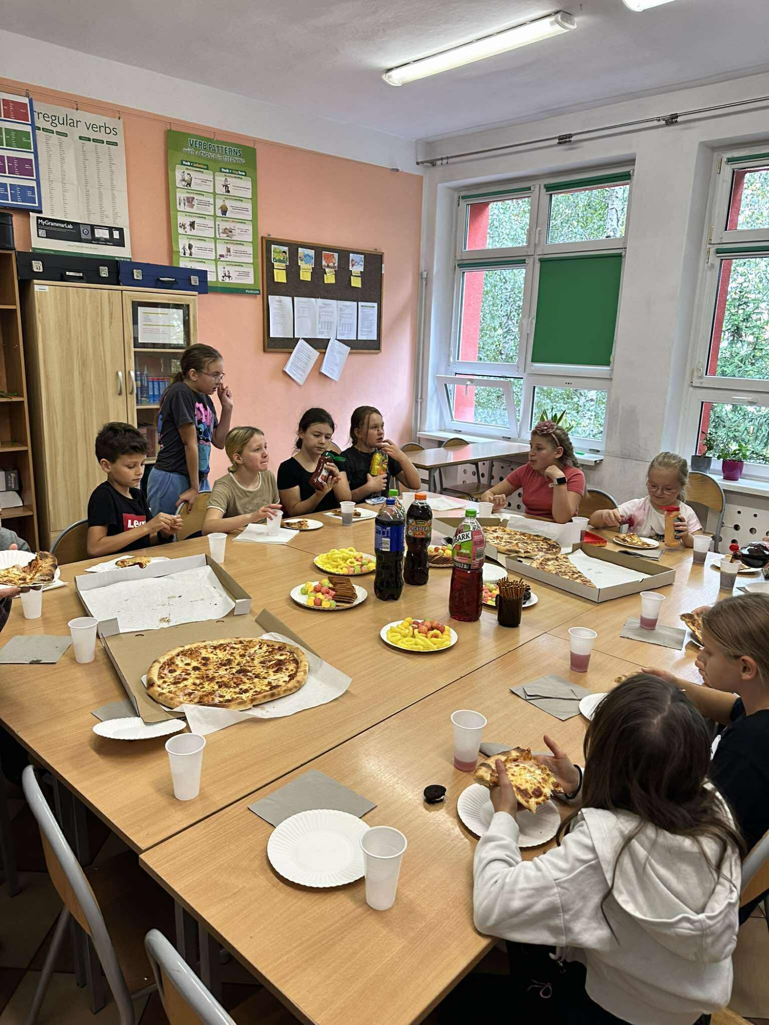 Cała klasa świetowała Dzień Chłopaka oraz Dzień Dziewczyny. Zamowiona została pizza dla dzieci. Jedlismy wspólnie , nastepnie graliśmy w gry oraz robiliśmy quizy. Bardzo miło spędzilismy czas.